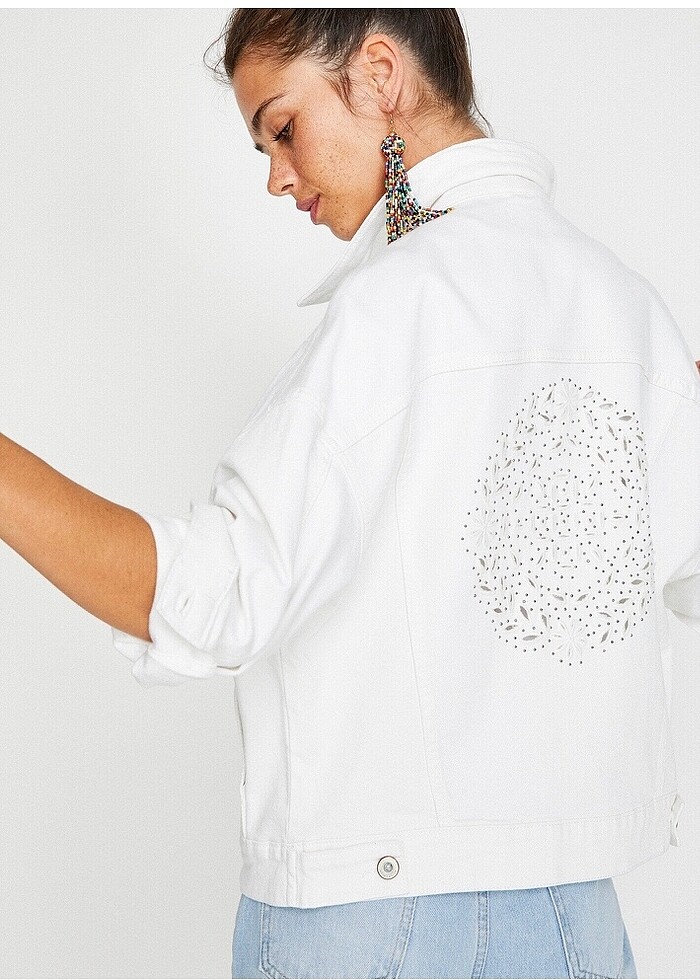 KOTON YENİ VE ETİKETLİ TAŞ DETAYLI JEAN CEKET