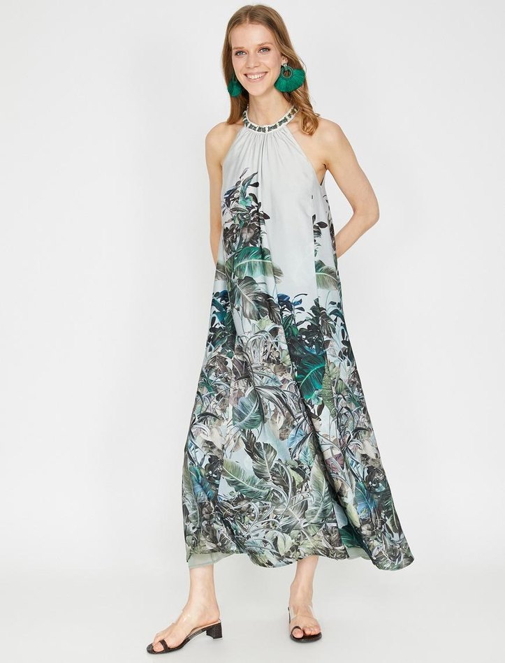 Koton Yeşil Saten Akıcı Elbise 34/XS