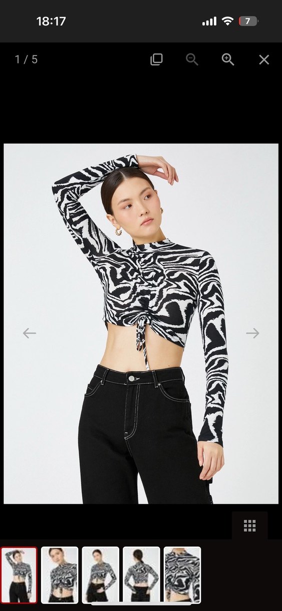Koton Zebra Desenli Uzun Kollu İpli Büzgülü Crop bluz