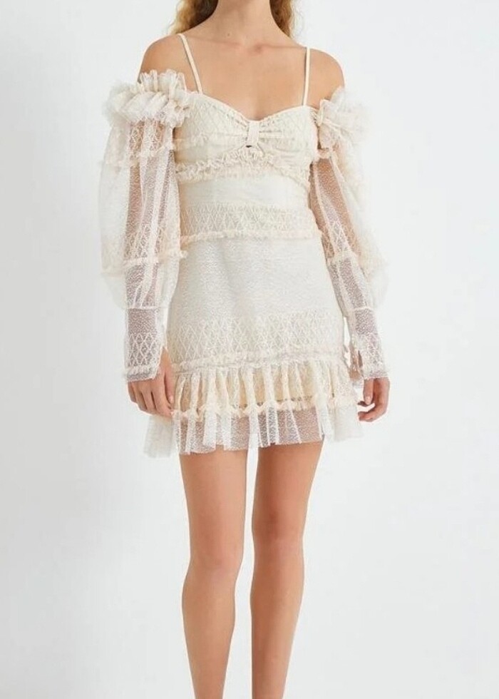 KOTON ZEYNEP TOSUN DANTELLI OMZU AÇIK, MİNİ ELBİSE,