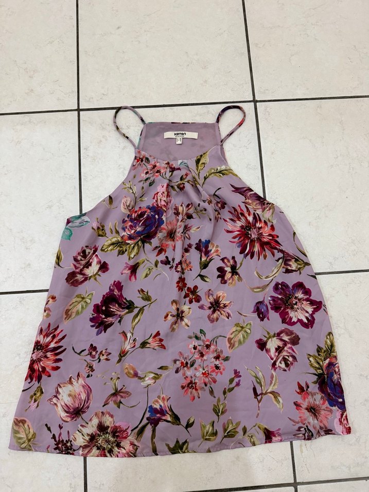 KotonÇiçek Desenli Mor Halter Yaka Bluz