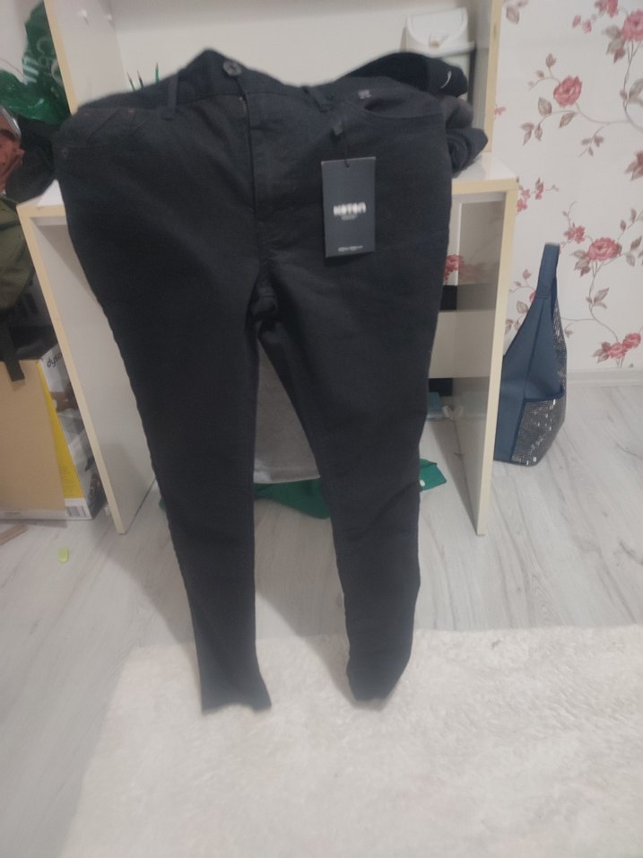 Erkek cocuk icin 28/30 ölçüde sıfır etiketli Koton marka kalitelii siyah kot pantolon, regular fit ve midi boyda. Ofis için uygun, rahat ve şık bir görünüm sunar.