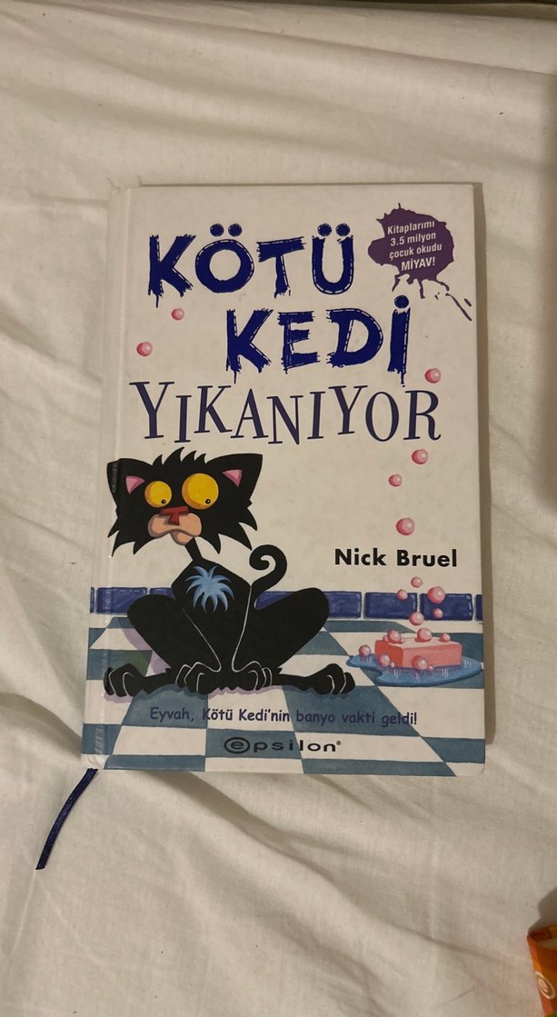 Nick Bruel'in Kötü Kedi Yıkanıyor kitabı, banyoya giren yaramaz bir kedinin komik hikayesini anlatıyor. 3,5 milyon çocuk tarafından okunan popüler bir serinin parçası.
