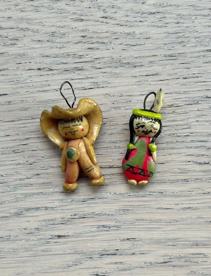 El işi hamurundan yapılmış yaklaşık 30 senelik kolye ucu charmlar. Çok sevimli ürünler, birlikte satıştadır.