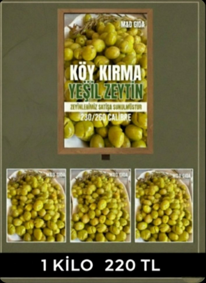M&D Gıda'nın 230/260 kalibre köy kırma yeşil zeytinleri,