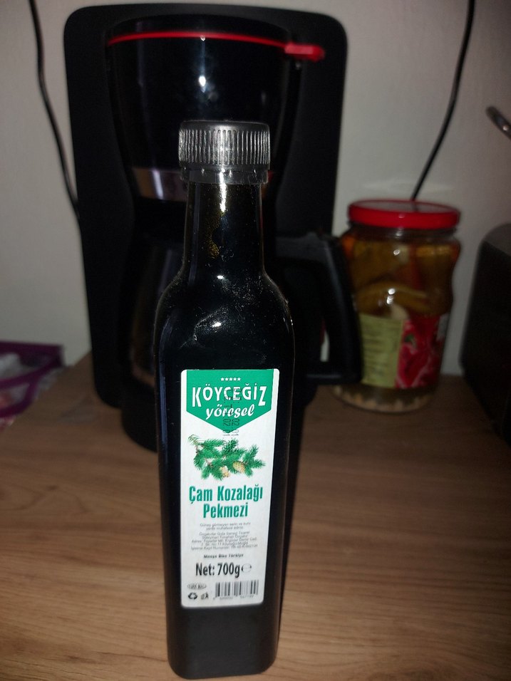 Koycegiz ürünüdür, diğer aromalı urunler gibi değildir, temiz gıdadır. 2 adet almıştık fakat çok yoğun, akıcı değil, her gün 1 yemek kaşığı yesek bile bitmez, birini satıyorum. Son kullanım tarihi uzerindedir, açılmamıştır paket olan bu şişedir. Solunum sistemi rahatlamasi için aldım kendime ( Tedavi için değildir, rahatsızlığınız varsa muhakkak doktorunuza gidiniz, bu sadece minik bir rahatlama) fakat 2.sise fazla gelecek, bunu kullanınca anladım. Kaliteli üründür, tadı gerçekten tam bir kozalak gibi