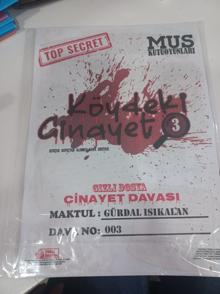 Gizli Dosta Cinayet Davası'nı konu alan, maktul Gürdal Işıklı'nın yer aldığı Köydeki Cinayet 3 kitabı. MUS Kutuyounları serisi içinde, üstü kapalı dosya.