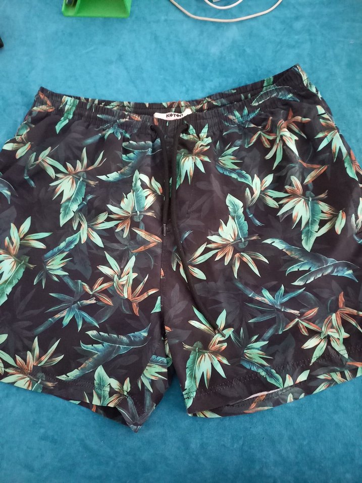 Düğmeli ön kısımlı, kahverengi ve yeşil tonlarda koyu renkli tie-dye desenli, loose fit erkek mini şort. Plaj ve günlük sokak stiline uygun. 1kez giyildi. 870 tl ye 1 ay once alindi