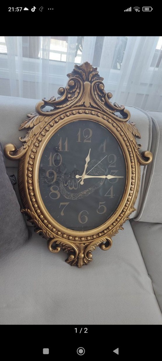 Koyu altın renkli, süslü çerçeveli dekoratif duvar saati. Belirgin rakamları ve zarif kollarıyla klasik bir dokunuş sağlar. ️ uzunluk 72 - En 46