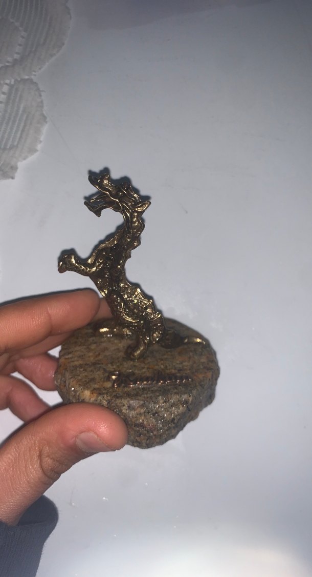 Koyu altın renginde, taş tabanlı, dokulu ve sanatsal tasarımlı figürin. PAZARLIK PAYI VAR