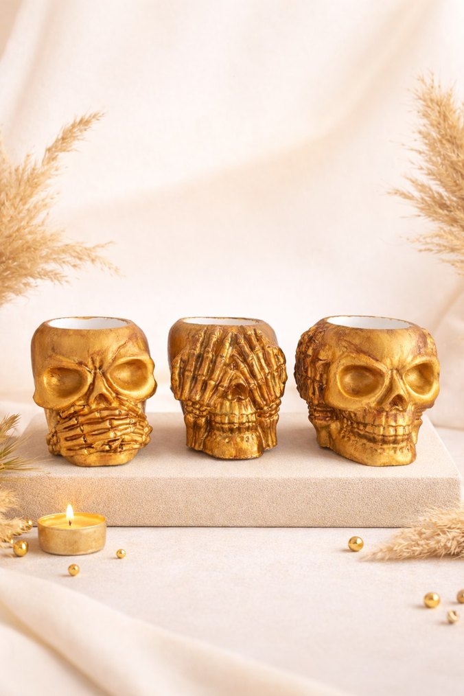 3’lü dekoratif kuru kafa seti, taş tozundan el yapımı olarak üretilmiştir. Akrilik boya ile boyanmış, antik koyu kızıl eskitme kremi uygulanarak özgün ve karakteristik bir görünüm kazandırılmıştır. Kuru çiçek vazosu, kalemlik veya makyaj fırçası düzenleyici olarak kullanılabilir. Ev, ofis ve çalışma alanlarında dekoratif bir tamamlayıcıdır. Her ürün el yapımı olduğu için renk ve doku farklılıkları gösterebilir. Uzunluk 8 cm #kurukafa #dekor #kafatası #dekoratifobje #gotik #vazo #kalemlik #elyapımı #tastozu #minimaldekor #antikeskitme #gotik #bohem #biblo