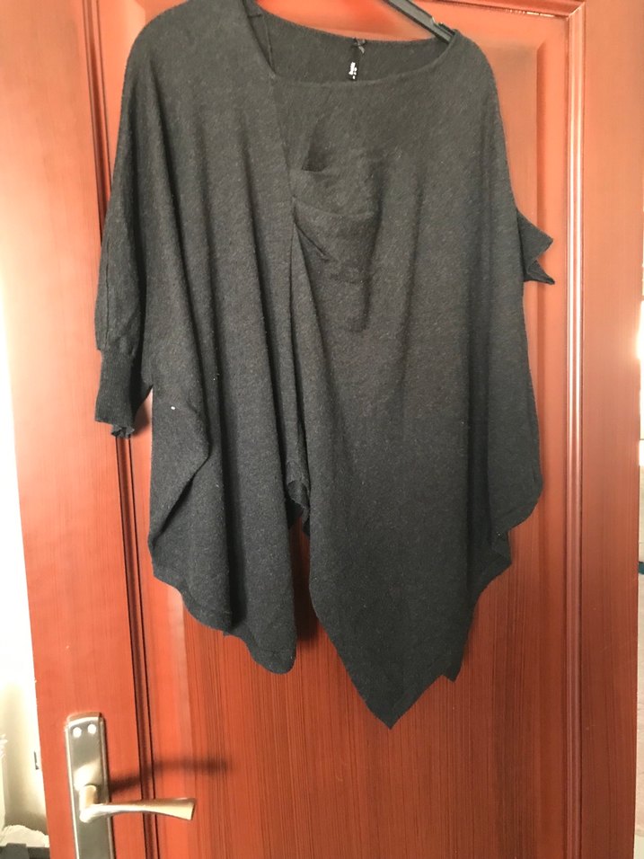 , uzun kollu ve bisiklet yaka olan, salaş kesim midi uzunluğunda drapeli poncho. Günlük kullanıma uygun rahat ve şık tasarım. Orta kısım boy 58 cm kenar kısım boy 80 cm iki kol arası %55 polyester salaş model olduğu için l-m bedene de olur