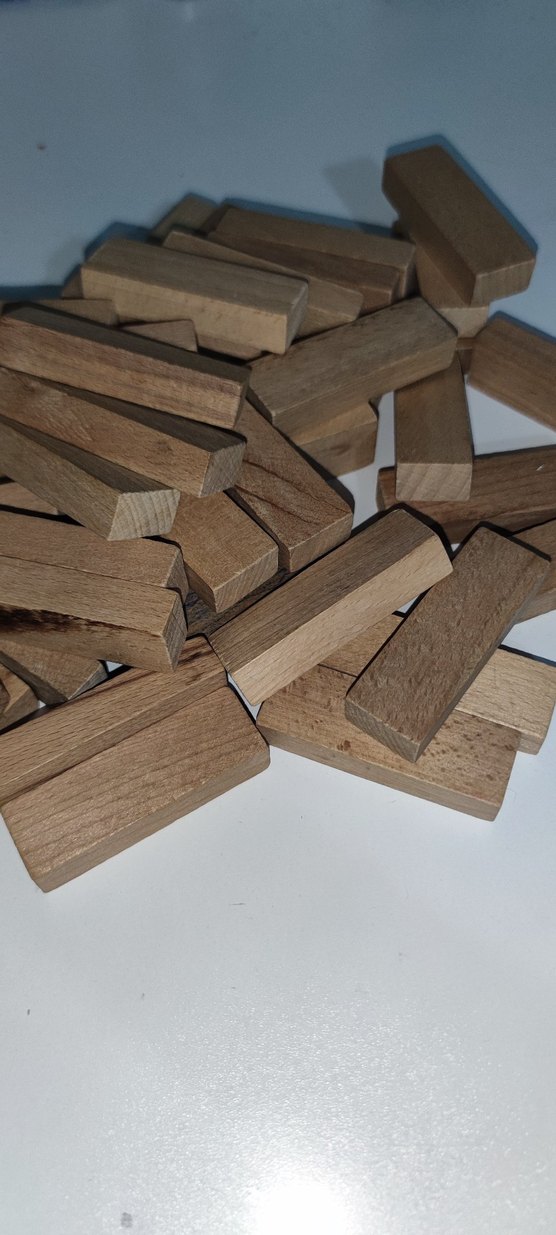 Koyu bej renkte, pürüzsüz kenarlı ahşap oyuncak bloklar, yaratıcı oyun ve inşa için uygundur. 54 tane bulunmaktadir