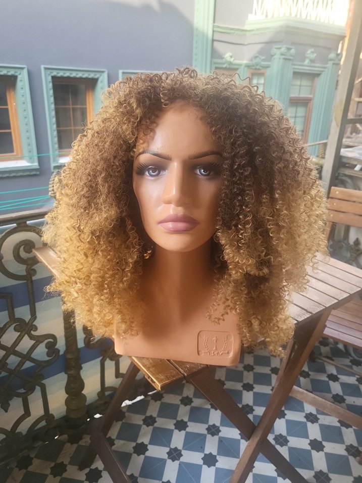 Koyu Bej Bukleli Bohem Afro kivircik Peruk sentetik