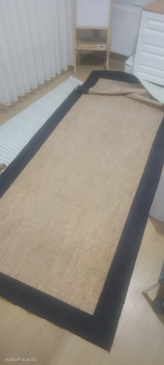 Koyu bej renkte orta kısmı ve koyu kenarları olan modern tarzda düz halı.
