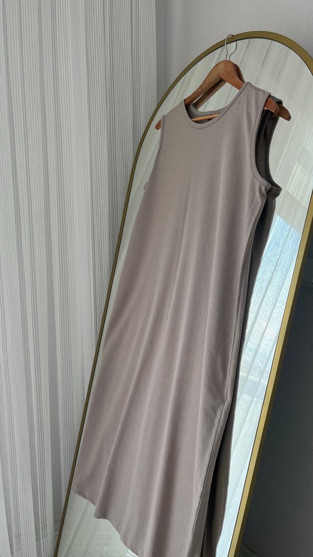 Kolsuz, uzun elbise. Düz ve yumuşak sentetik kumaştan, minimal ve trend görünüme uygun. İç göstermez farklı renk ve bedenleri mevcuttur .