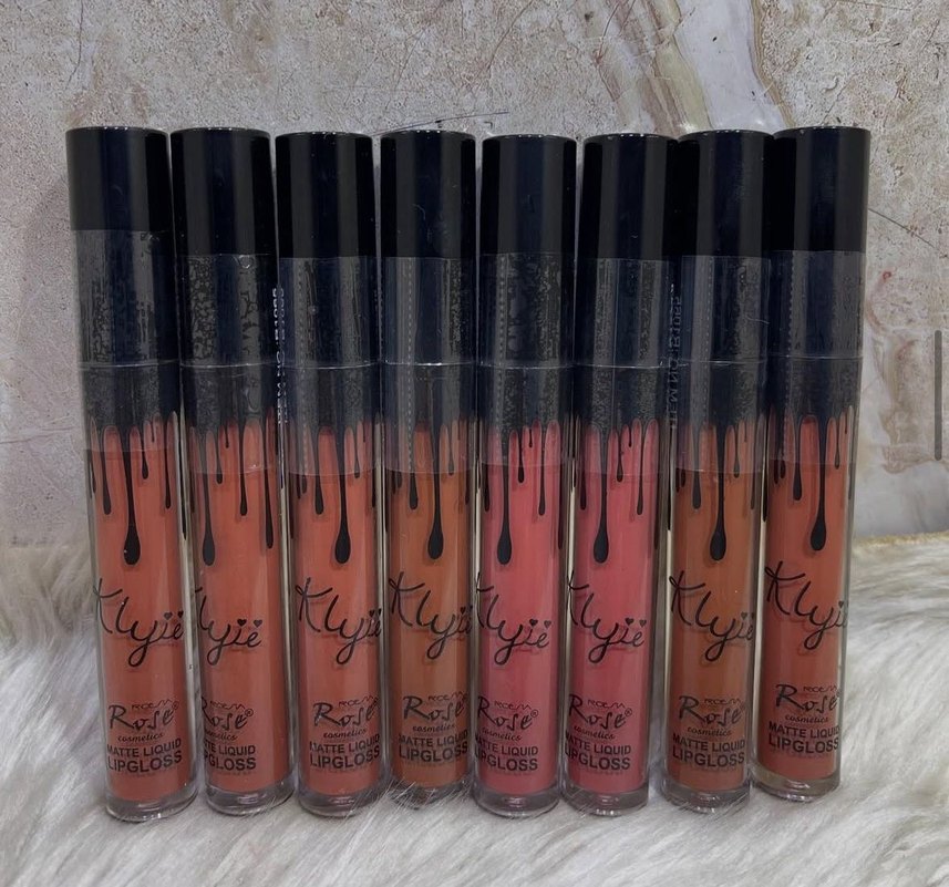 Koyu bej renkte, mat bitişli likit rujlar. Marka adı Rosyie olarak görünüyor.