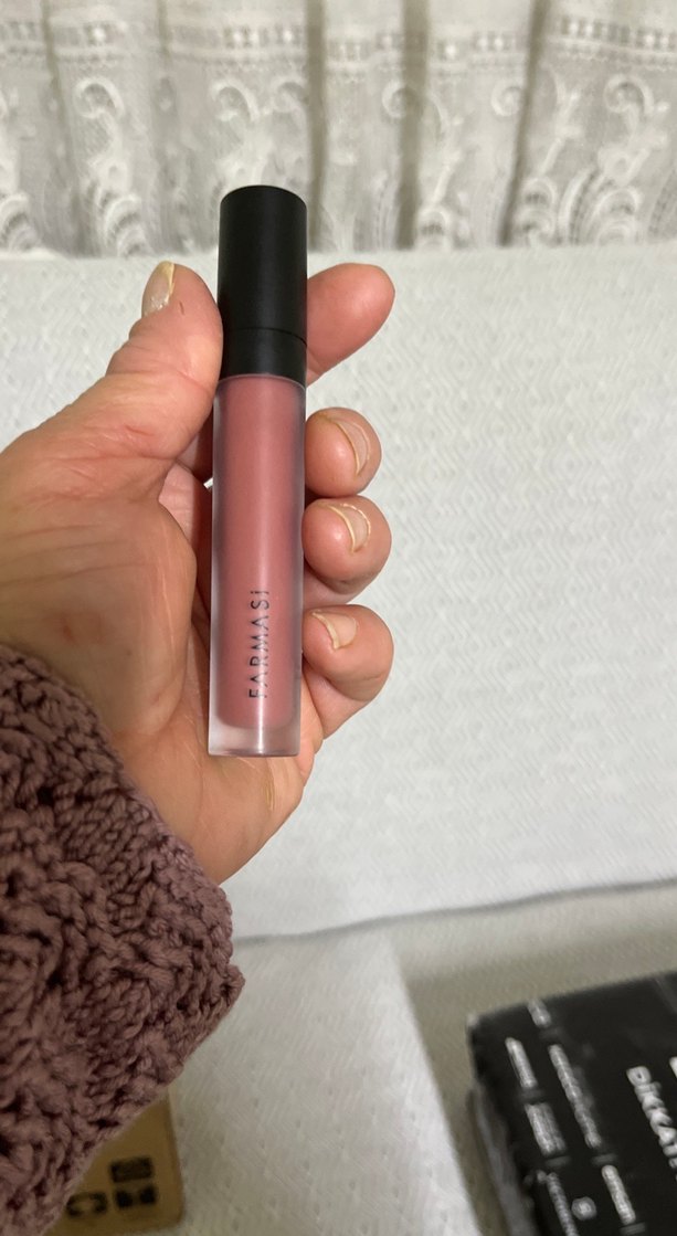 Koyu bej tonunda, uzun süre kalıcı ve pürüzsüz bir sıvı ruj.