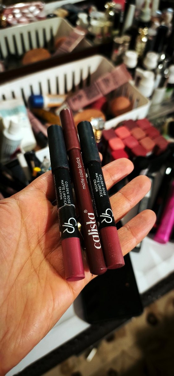 Mat bitişli, koyu bordo renkli üç adet ruj kalemi. Farklı tonlarda bordo renk seçenekleri sunar. Orjinal kalın dudak ruj kalemleri denendi sıfır ayarında 3 adet fiyatı