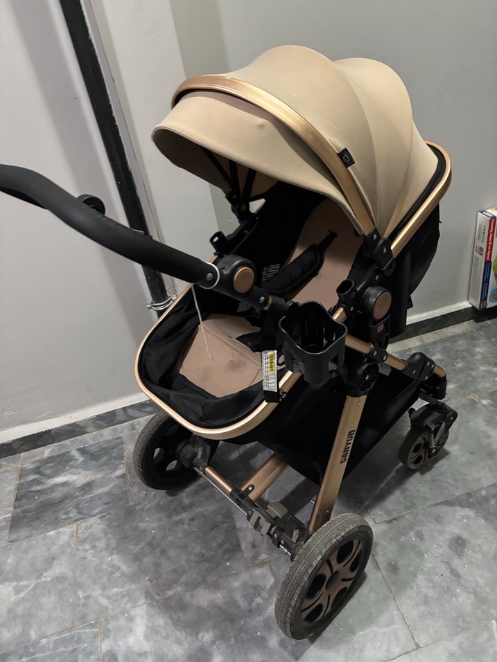 Koyu camel renginde, geniş tente ve rahat oturma yeri olan sağlam yapılı bebek arabasıdır. Bardaklık ve dört tekerlekli hareket kolaylığı sağlar. Ürünün bebek puseti de mevcuttur