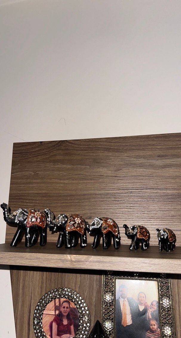 Koyu camel renginde, detaylı desenlerle süslenmiş fil figürleri seti. Dekorunuza farklı bir hava katmak için ideal .