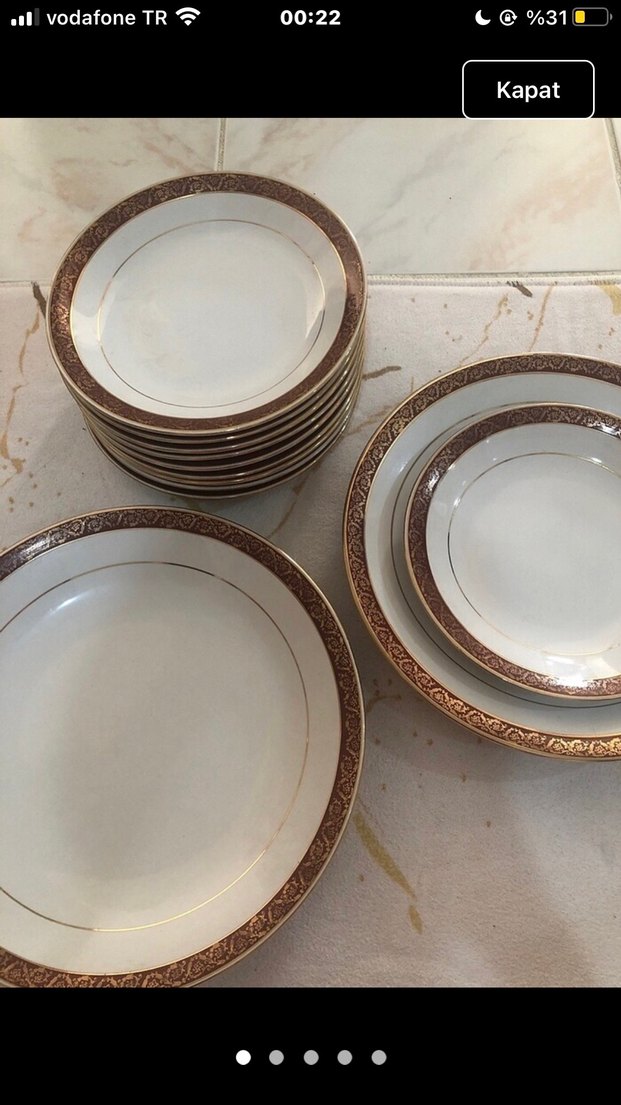 Koyu desenli, kenarları altın detaylı beyaz yemek tabakları seti. ️satın alım için yazınız