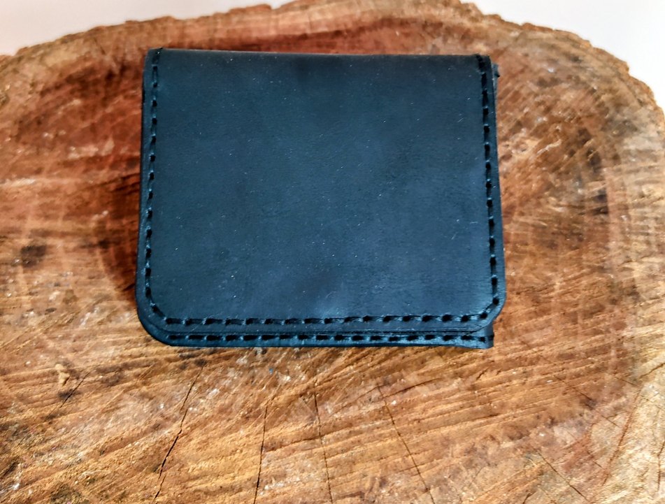 Siyah renkte, desen içermeyen, sade ve el dikişi detaylı minimalist erkek cüzdanı.