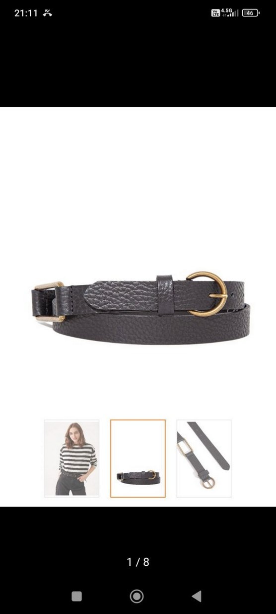 Koyu siyah-gri deri kemer, minimalist ve çağdaş tasarıma sahip. Yuvarlak tokası ile sade ve temel tarzlar için uygun.