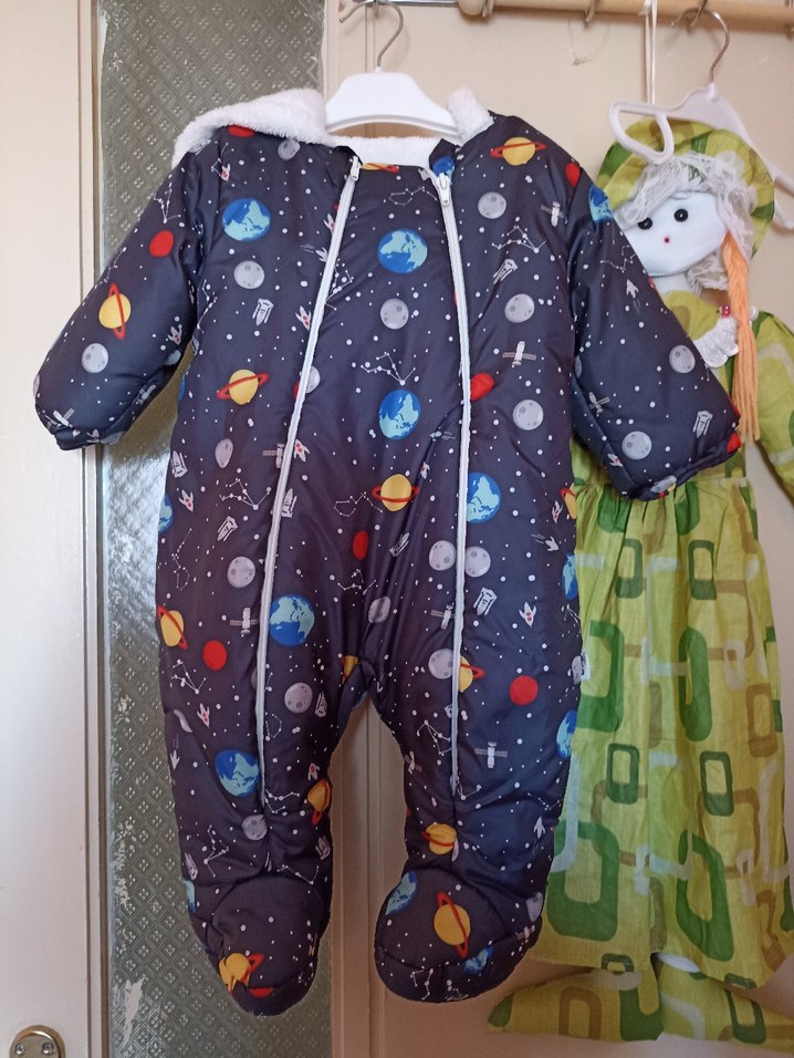 Koyu gri renkli, baskılı desenli erkek bebek tulumu, fermuarlı ve yumuşak sıcak kumaştan üretilmiştir. Sokak giyimi tarzındadır. ❄️ Ürün 6-9 ay içindir ancak 10 ve 11nci aylara kadar da kullanılabilir iki üç kez kullanıldı sıfır ayarındadır