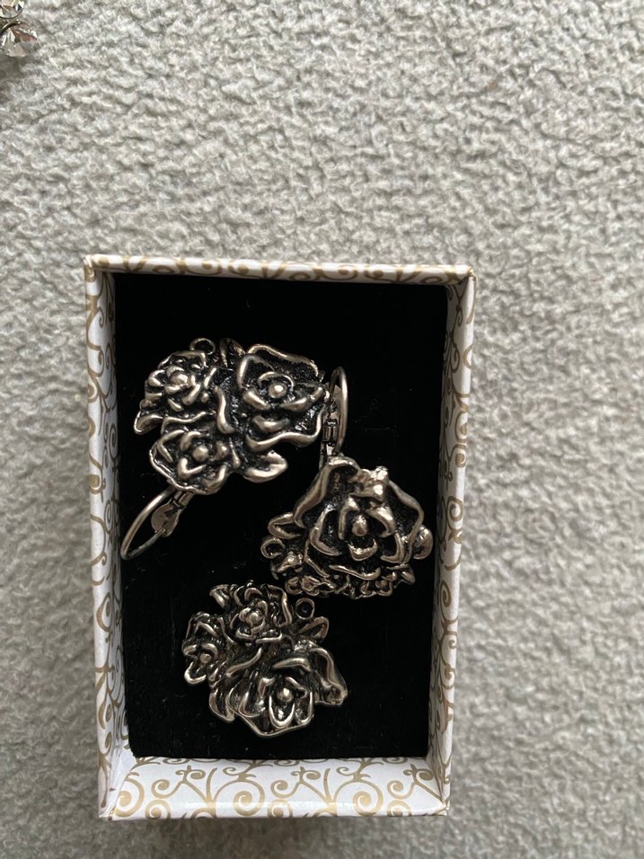 Koyu gri renkli, çiçek desenli vintage kadın yüzük, tokalı detaylı, gotik stil ve düğünler için uygun.