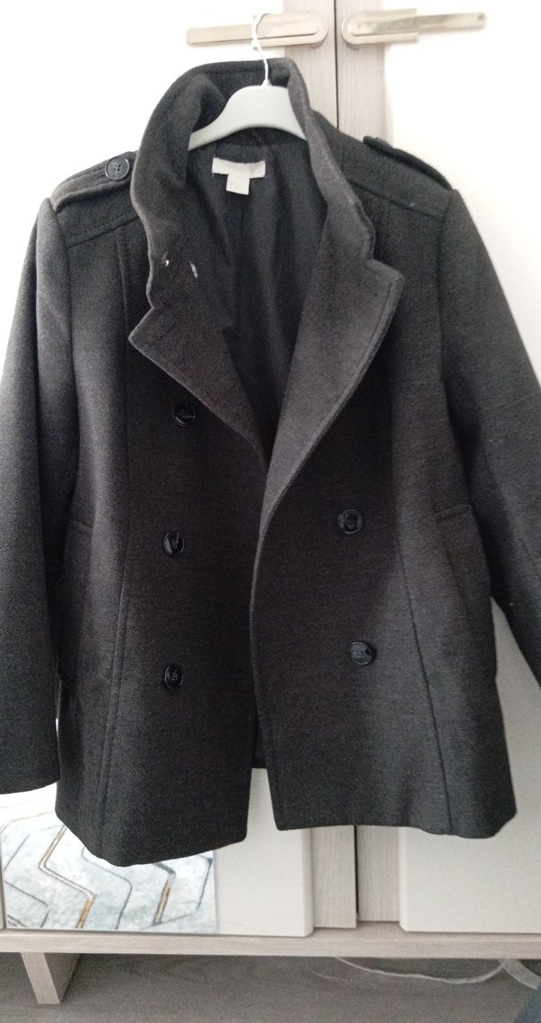 Koyu gri çift düğmeli kaban