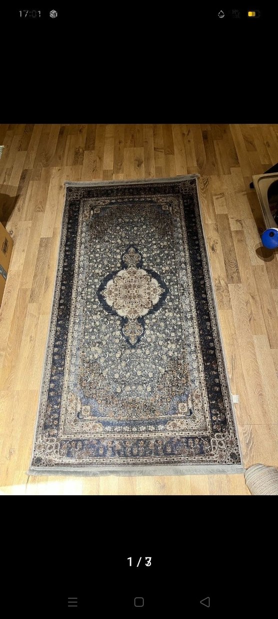 Koyu gri taban üzerine desenli detaylar içeren geleneksel halı, her mekâna klasik bir şıklık katar. 80/150 madame Coco kadifemsi hali
