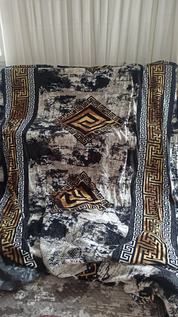 Koyu gri renkli, desenli ve geometrik motiflere sahip yumuşak dokulu halı poları