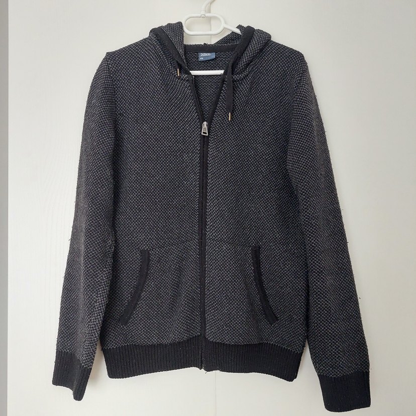 Koyu Gri Fermuarlı Kapüşonlu Erkek Triko