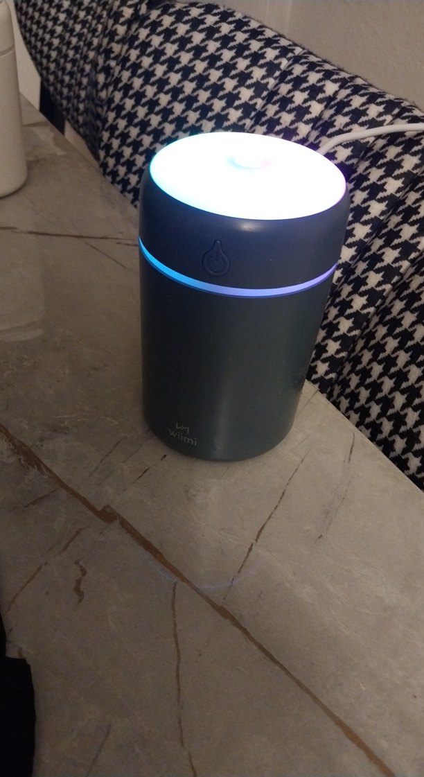Koyu gri renkte, üst kısmı ışıklı kompakt hava temizleyici ve nemlendirici cihazdır. İç mekan havasını temizler ve nemlendirir. ️