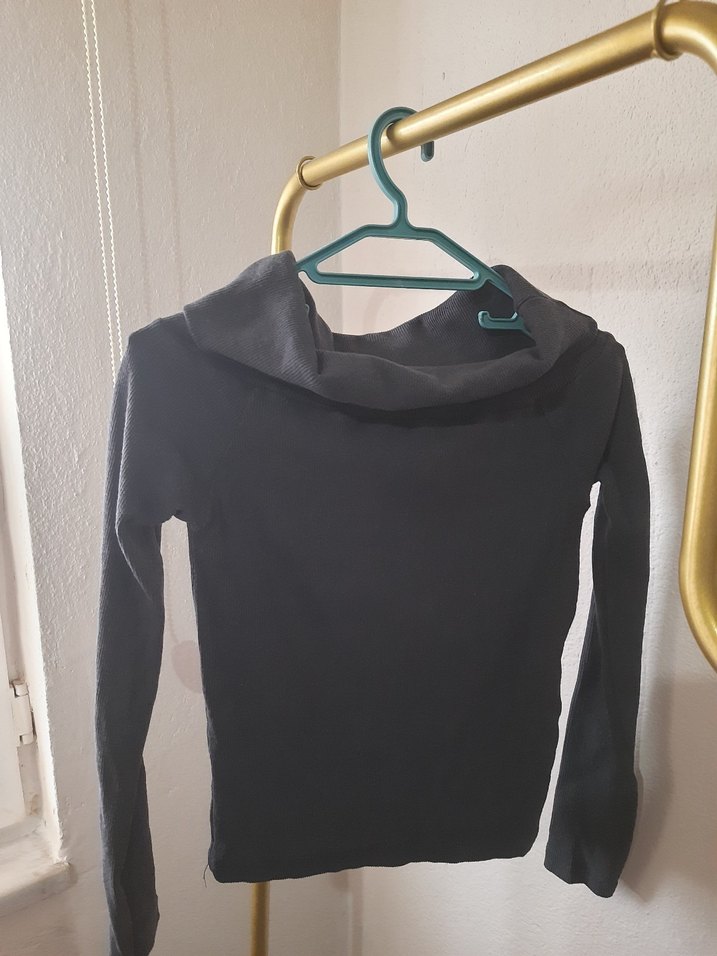 Koyu gri renkli, omuzları açık ve uzun kollu, yumuşak ve sıcak kumaştan yapılmış kadın sweatshirtü. Midi uzunluğunda ve zahmetsiz şıklık sunar, günlük kullanım için uygundur. İki kez kullanıldı. Markası temsilidir.