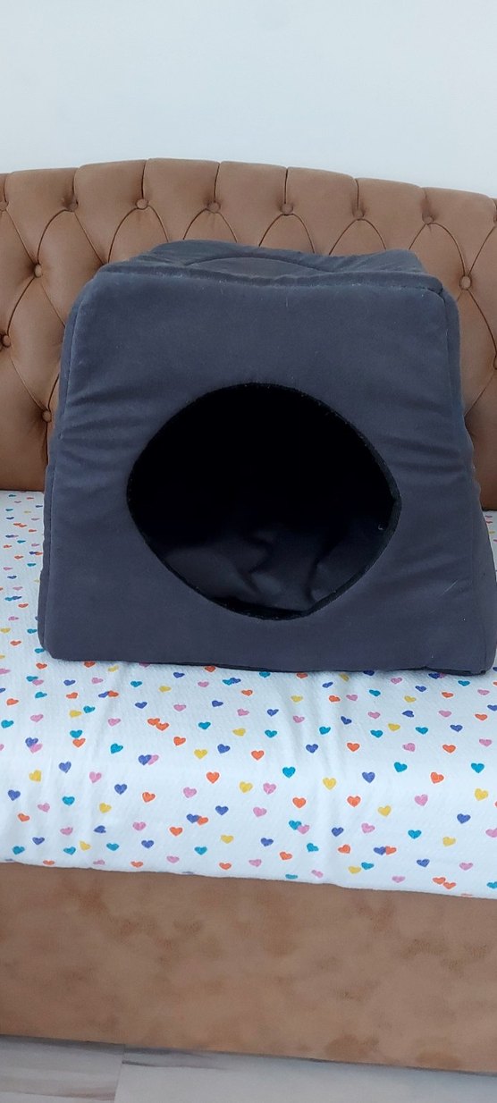 Üç fonksiyonlu .Yumuşak kumaş dış yüzeye ve kedilerin rahatça dinlenebileceği konforlu iç mekana sahip koyu gri kedi evi. Yük 37 cm , gerisi 42 x 40 cm