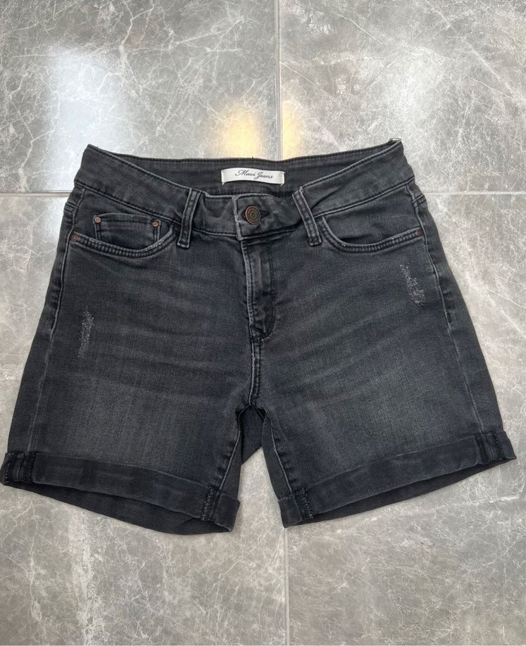 Koyu Gri Mini Denim Şort