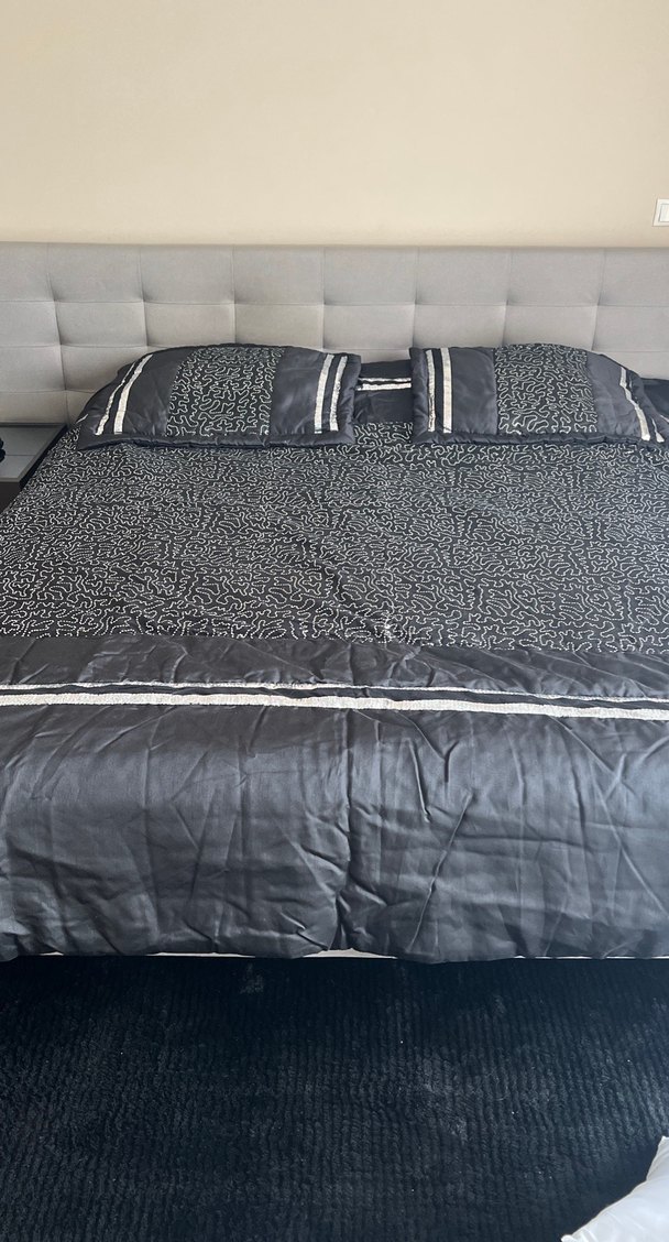 Koyu gri renkte, kumaş üzerinde nakışlı desen bulunan yatak örtüsüdür. Aynı desende yastık kılıfları ile tamamlanır. ️