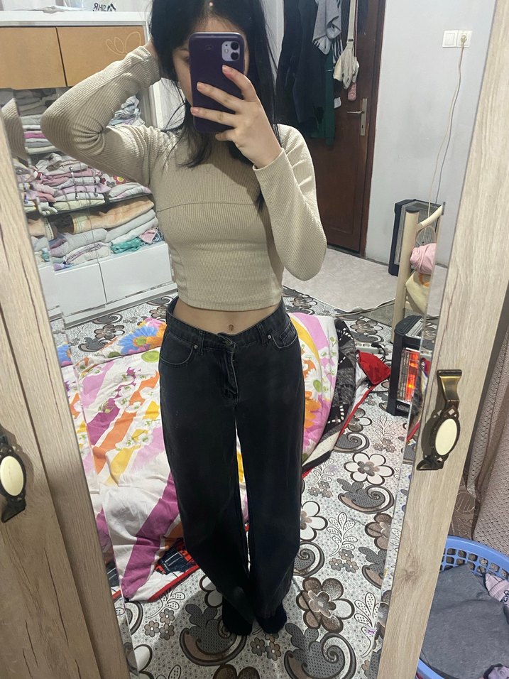 Koyu gri Renk Salaş Kesim Kadın Kot Pantolon