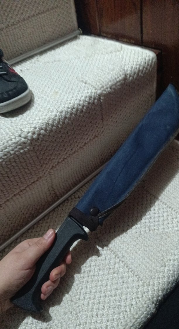 Koyu gri saplı ve koruyucu kılıflı, sağlam tutuş ve güvenli saklama sağlayan bıçak.
