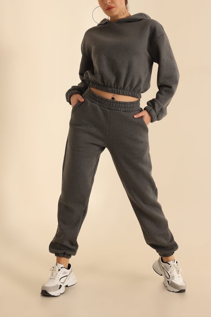 Şardonlu kalın kışlık crop eşofman takımı ( üst sweatin bilekleri düz)