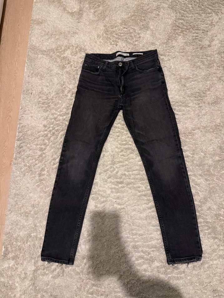 Koyu gri renkte, skinny fit ve normal boyda erkek kot pantolon. Dayanıklı denim kumaştan yapılmış, gündelik ve rahat kullanıma uygun, zahmetsiz şıklık sunar. Orijinal mango marka defosuz