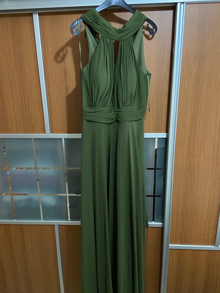 Koyu Haki Drapeli Uzun Abiye Elbise