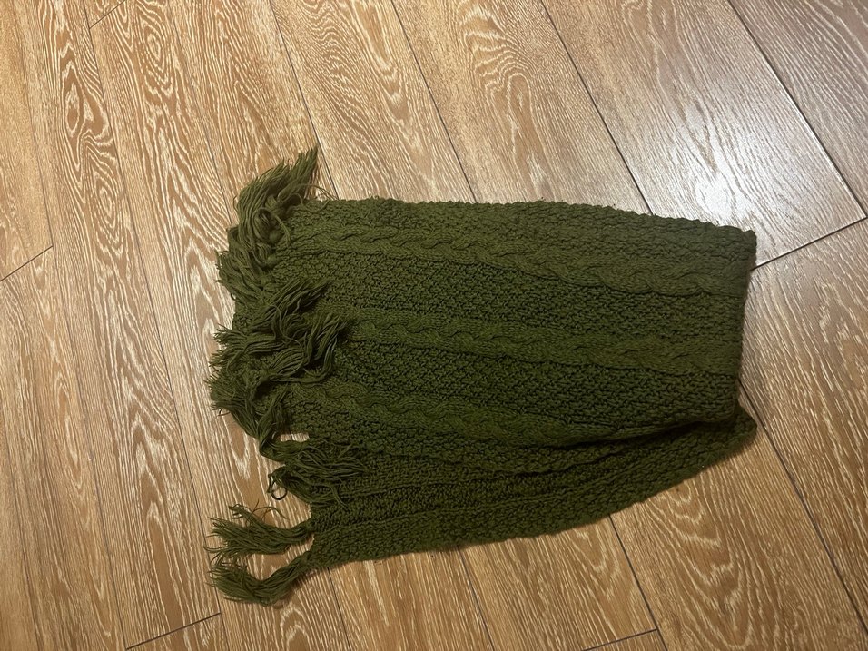 En:24cm, boy: yaklaşık:2 metre Koyu haki renkte, örgü dokulu ve püsküllü kenarlara sahip kadın şalı. Bohem ve retro stiller için uygundur.