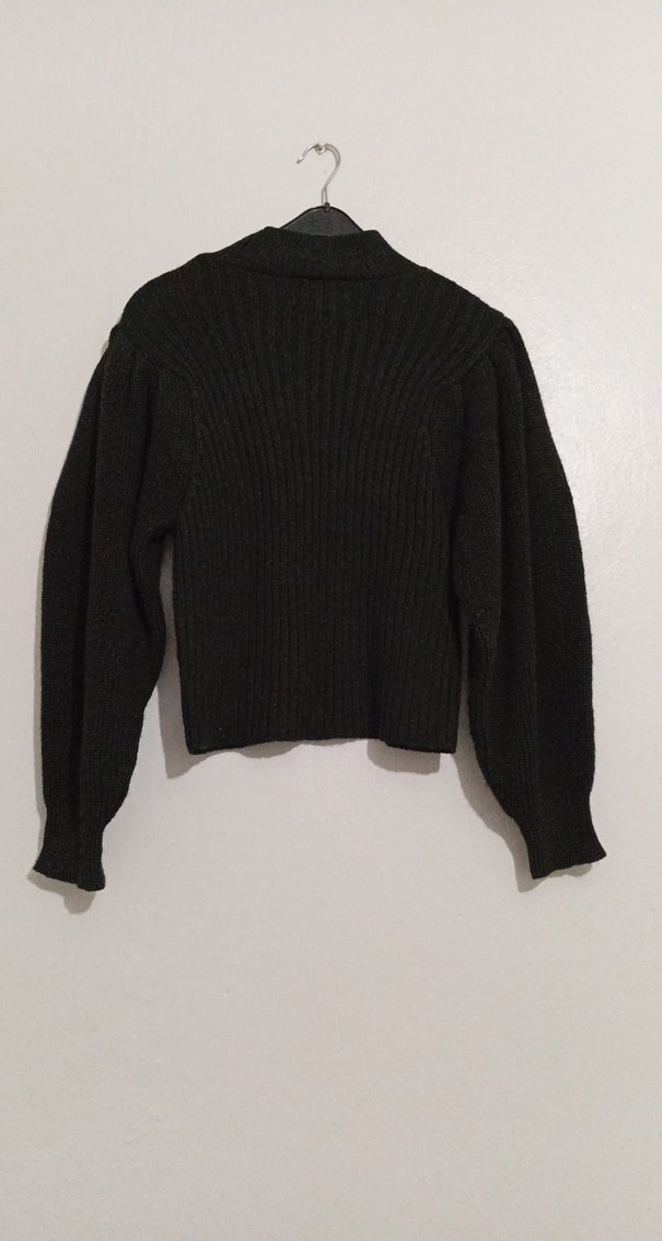 Koyu haki, örgü, fitted kesim, bisiklet yaka ve uzun kollu kadın triko kazak. Rahat ve desensiz, günlük kullanım için uygundur. iki kol arası 40 cm uzunluğuda 52 cm gelmektedir esneklik payı vardır