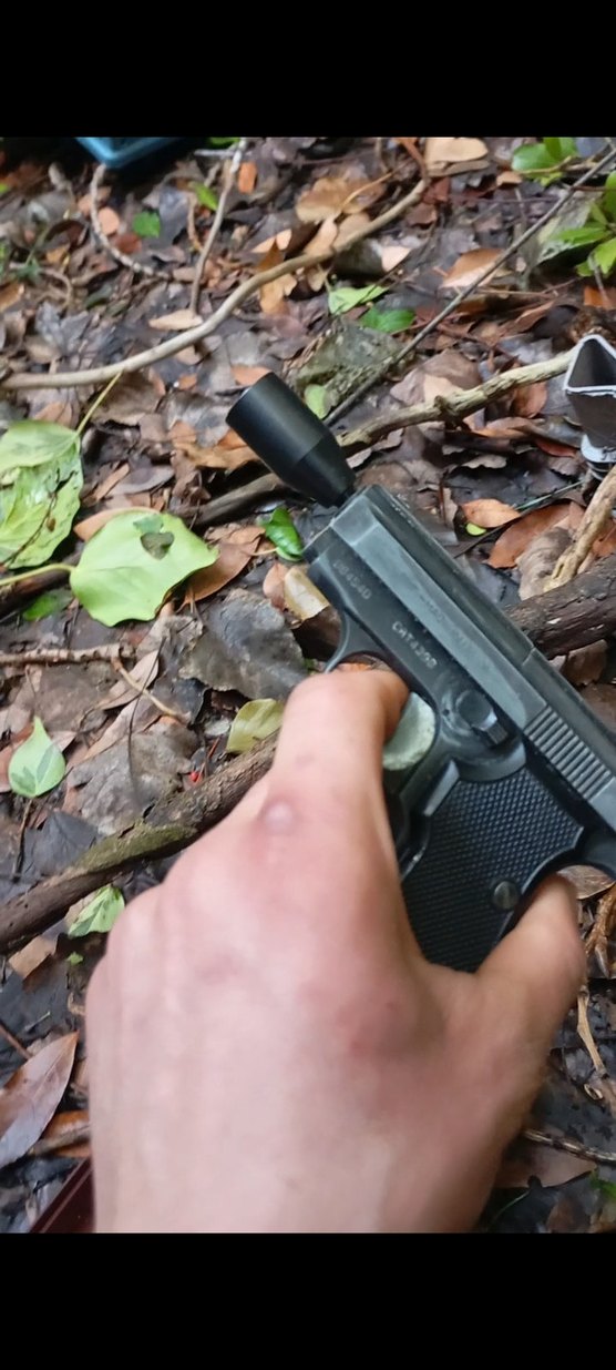 Koyu haki renkte oyuncak tabanca, dokulu tutma yeri ve susturucu aparatı ile gerçekçi tasarıma sahiptir. Hayal gücünü destekler.
