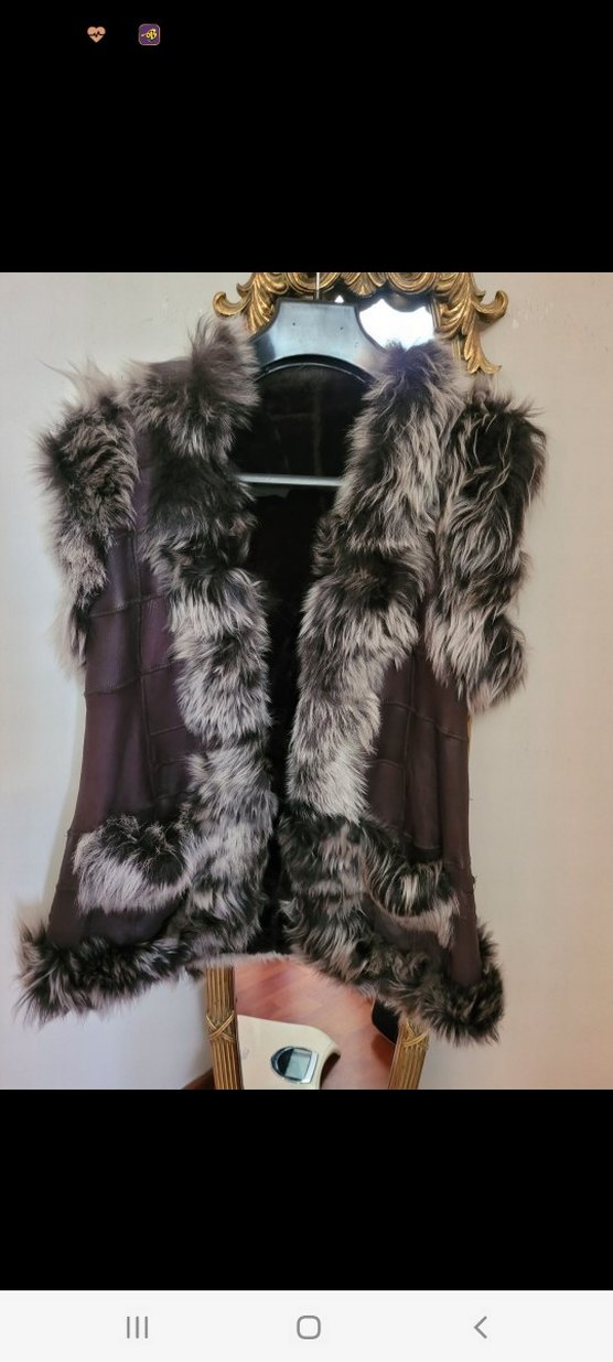 koyu kahve gri kürklü Süet Uzun Kadın Yelek