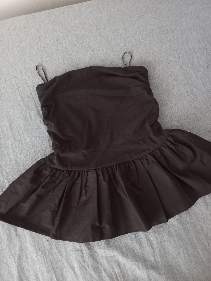 Yumuşak keten kumasli koyu kahve ust kismi silikonlu giyilmedi