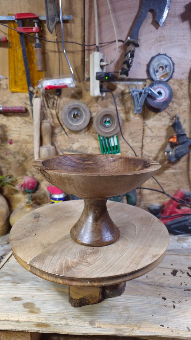 Koyu kahverengi ahşap ayaklı sunumluk ceviz ağacından işlenmiştir gıdaya uygun cilalanmistir ölçü resimlerde mevcuttur